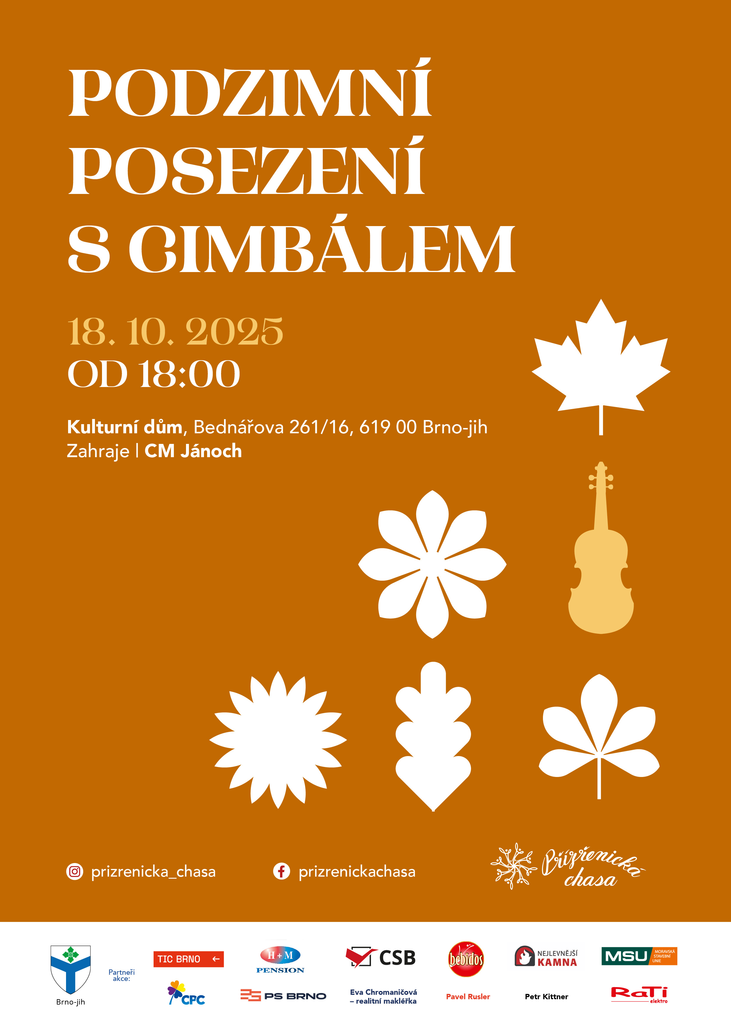 Podzimní posezení s cimbálem - sobota 18.10.2025 od 18:00 h Kulturní dům Bednářova 16